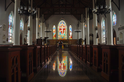 The pew has been made of mahogany. The floor is made of granite imported from Italy. You can see wonderful stained glasses on northern and southern side of the church.