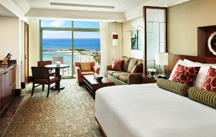 You can choose the 1 bedroom suites which will have either harbor/ terrace or ocean views. There is a special Topaz one bedroom ocean view suite that has huge ceiling to floor glass windows allowing you to admire the beauty of the ocean nicely. The Topaz suite is larger at 1195 sq ft while the other suites are 974 sq ft. If you are travelling with family then you can go for the 2 bedroom family suites which again have choices between terrace/ ocean and harbor views (room area 1497 feet). A 1718 sq ft large Topaz 2 bedroom suite is also available.