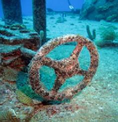 Hermes lies one mile offshore at Horseshoe Bay. The small ship sits upright in 80 feet of water with her mast pointing toward the surface. This wreck is a favorite among underwater photographers because she is intact, the visibility is exceptionally clear and lighting conditions are bright. The white sand bottom reflects sunlight and helps eliminate the dark shadows normally found around shipwrecks. Divers can examine her engines, galley, cargo hold, pilothouse, deck winch and propeller.
